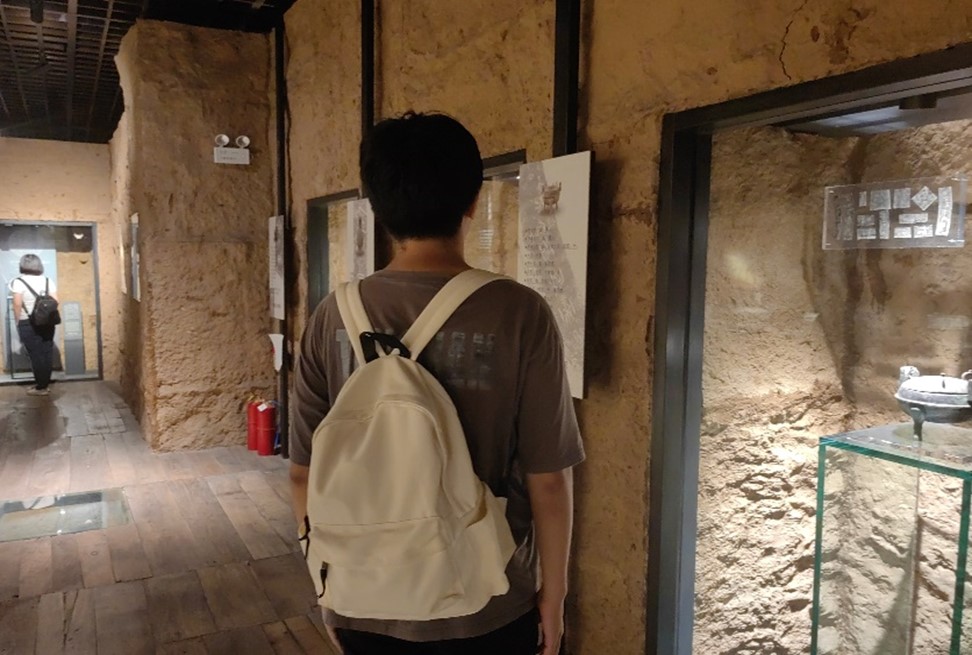 调查团成员分别参观了市博物馆西汉齐王墓陪葬坑陈列展厅、馆藏文物精品展、红色淄博——馆藏革命文物展和“侯杨砚”专题陈列展厅。一件件珍贵的文物,承载着独属于它们时代的风采。其中,宋代影青茶盏,胎质细腻、薄而透明;海兽葡萄纹镜,构思精巧,写实生动;龙泉窟三足窑,瓷釉厚润,极富朴素。通过本次实地考察与学习,团队成员深刻感受到了淄博的历史底蕴和文化魅力。