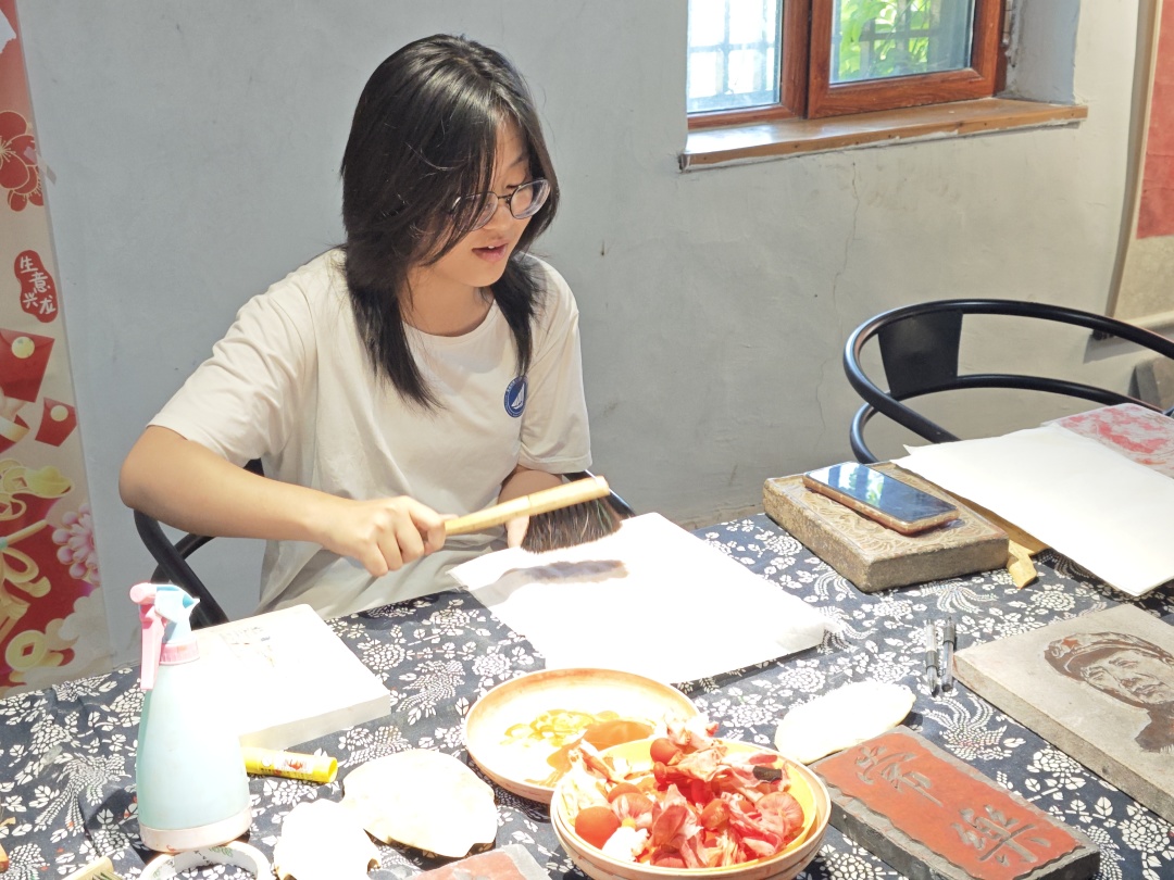 团队成员共同参观了当地的非物质文化遗产博物馆,进行了面塑、剪纸和拓片的制作体验,通过实地考察、文化体验等形式,深入了解五埠岭丰富的非物质文化遗产及其传承现状,自觉在躬身实践中传承和弘扬中华优秀传统文化,在行走与体验中感悟非遗培根铸魂的魅力,在学深悟透中践行新时代文化使命的责任担当。