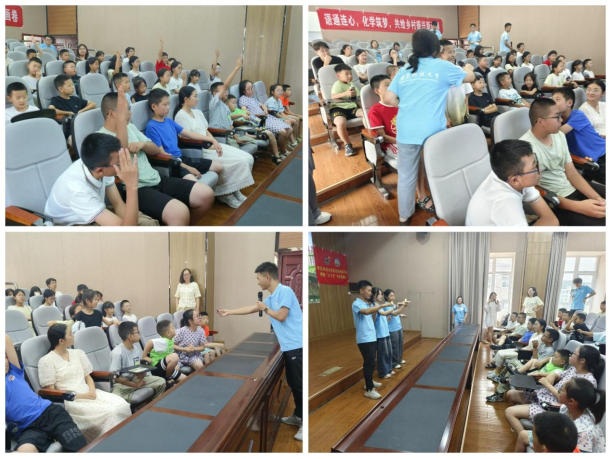 在咸丰一中,实践队首先采访了青科大2013届校友、咸丰一中高三3班班主任徐果老师,与老师交流了普通话在教学中的使用情况,随后实践队开展了“推普助力科学引领”讲堂活动。通过科普讲座、科学实验演示、有奖知识竞答等方式,向青少年们普及了科学知识,并强调了普通话在科学传播中的重要性。活动激发了青少年们对知识的学习热情,也提升了他们运用普通话进行学术交流的能力,为培养未来科技人才奠定了坚实基础。