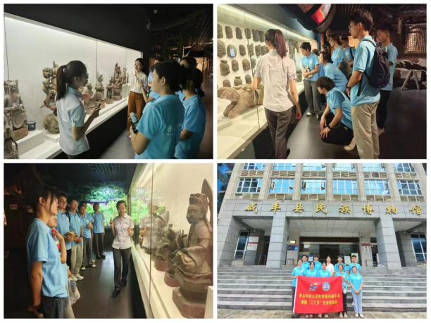 活动首日,实践队员们首先参观了咸丰县民族博物馆。馆内丰富的展品生动展现了当地深厚的历史文化底蕴和独特的民族风情,让队员们深刻感受到了土家族、苗族等少数民族文化的魅力。通过此次参观,不仅为队员们接下来的实践活动打下文化基础,也更加坚定了他们通过推广普通话促进民族文化传承与创新的信念。