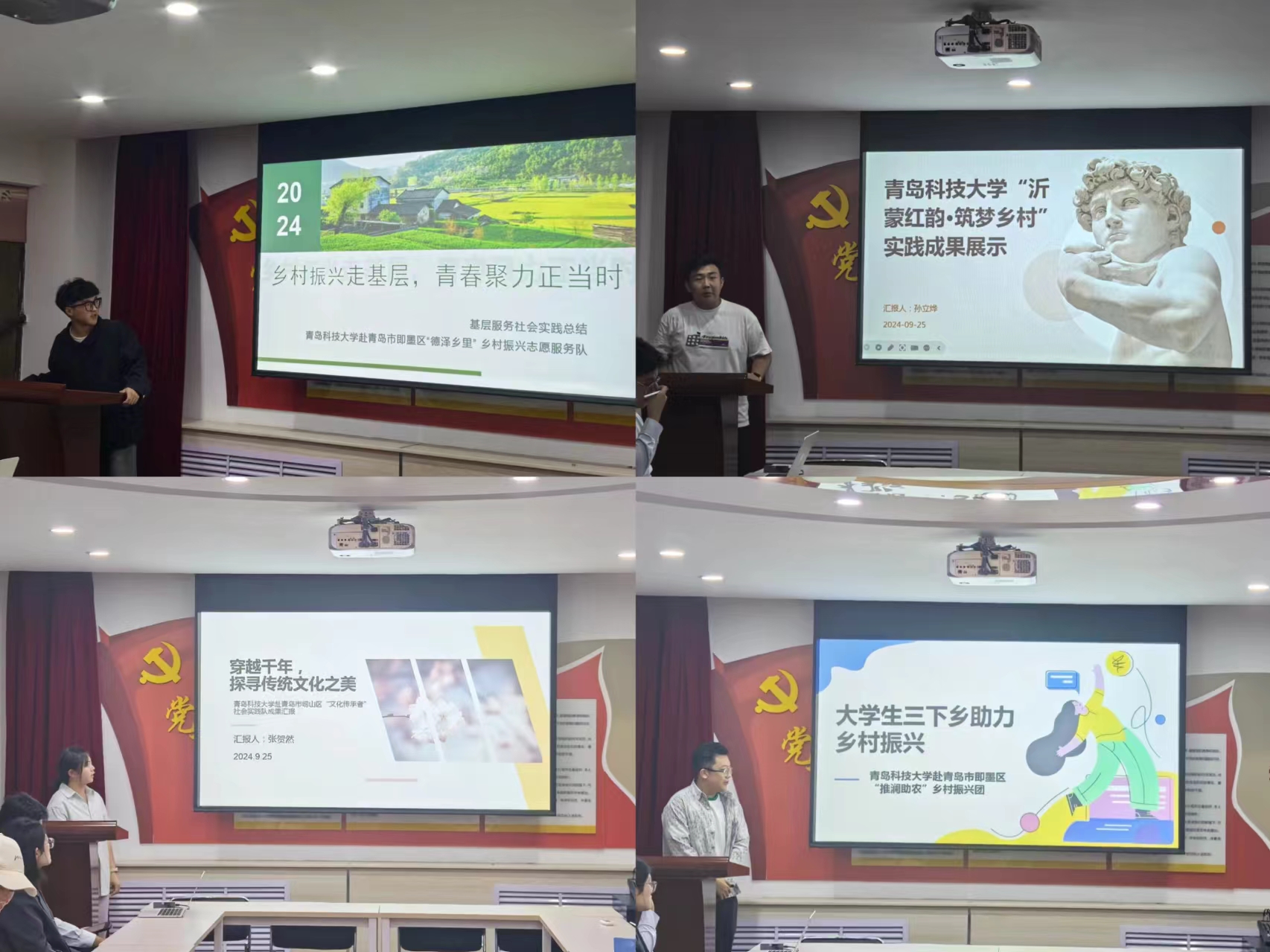 本次暑期社会实践活动,学院团委共组建了33支重点实践团队,其中团中央专项团队1支,校级重点队4支,院级重点队28支,207人积极投身“返家乡”社会实践活动,累计500余名青年学生奔赴省内外14地市,围绕理论宣讲、爱国主义教育、乡村振兴、非遗传承、基层服务等领域展开了形式多样、内涵深刻、卓有成效的社会实践活动。各实践队队长声情并茂地分享了实践过程中的所学所得、所思所感。他们或讲述着扣人心弦的故事,或描绘着刻骨铭心的感人瞬间,以其扎实的工作成果和质朴无华的语言,博得了在场同学们的阵阵热烈掌声。