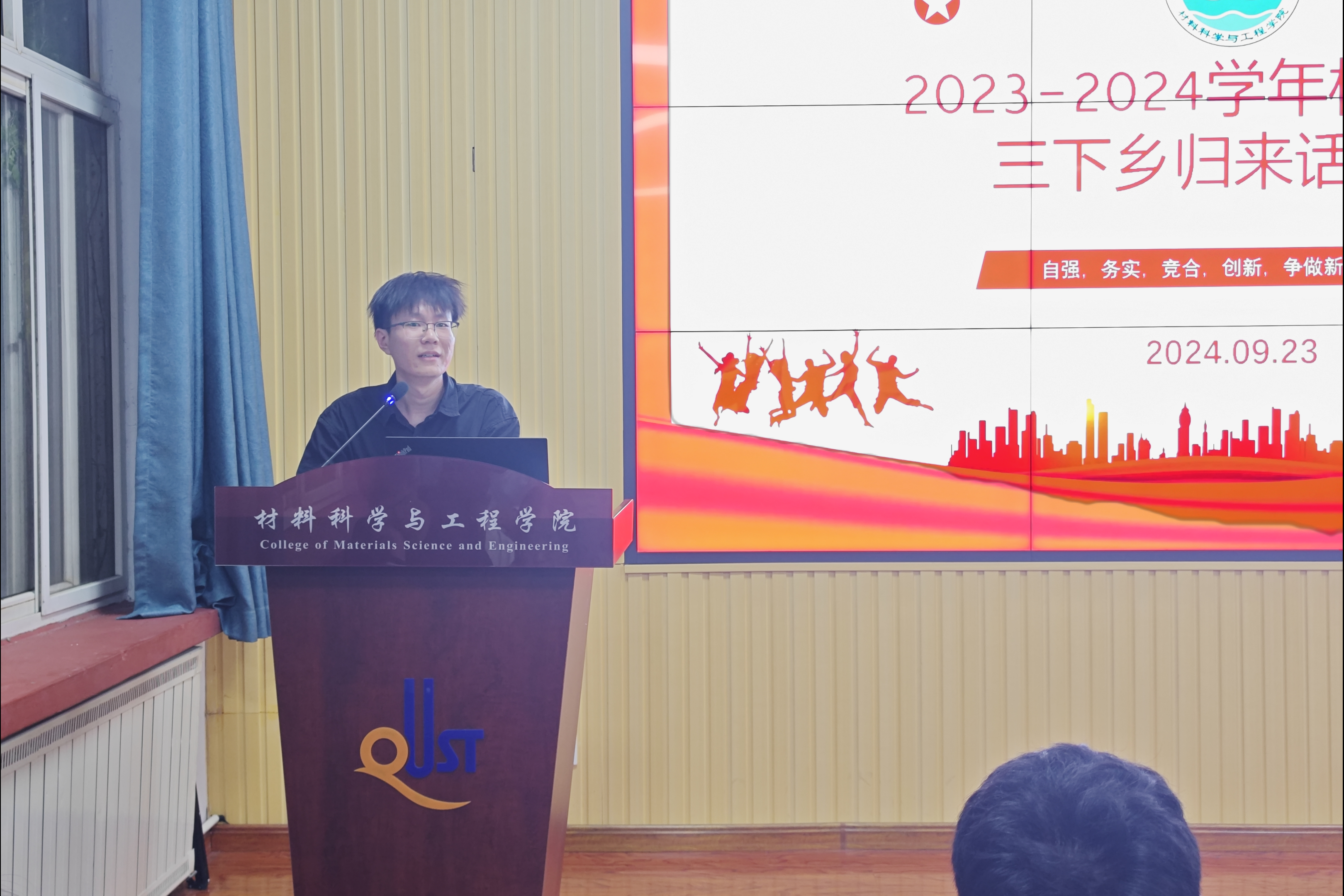 为落实暑期三下乡实践成果,强化育人成效,发挥榜样作用,材料学院团委于材料楼101举办2024年暑期三下乡“实践归来话成就”经验分享交流会,促进青年学生在实践中锻炼自我,在推动乡村振兴的道路上贡献自己的青春力量。学院团委社会实践指导老师、优秀实践团队代表及2024级青年学生代表参加此次活动。
