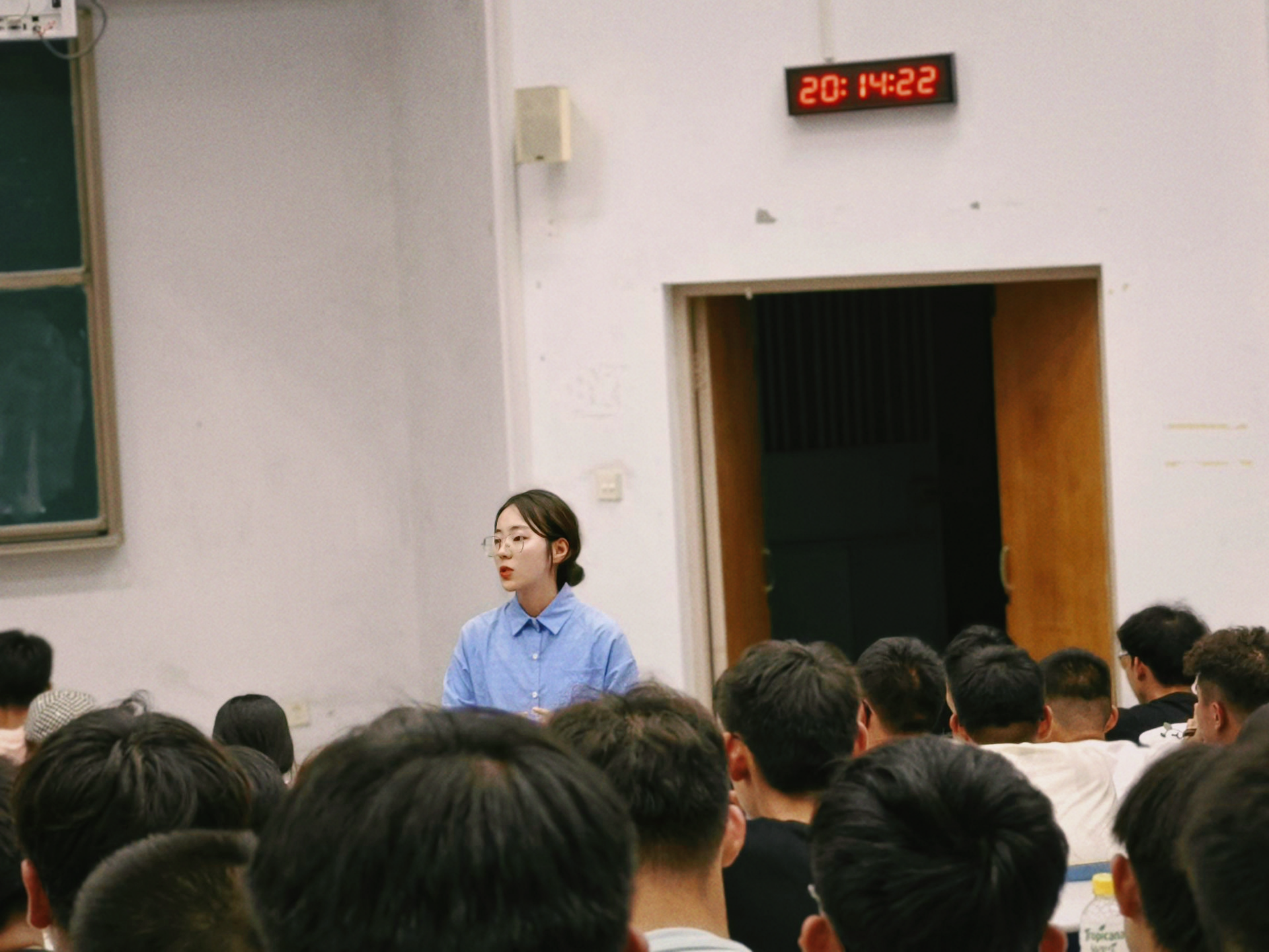 在谈及大学生活规划时,丁雅琼老师建议新生们积极在校园生活视域内去思考、探索大学生活的价值分布,结合自身兴趣和职业规划,制定科学合理的四年学习计划,以“可视化”的进步,逐期叠加,渐渐走出阶段性的迷茫。她引用古语“苟日新,日日新,又日新”,激励新生们勇于开拓创新,以开放包容的心态面对大学生活的种种挑战。