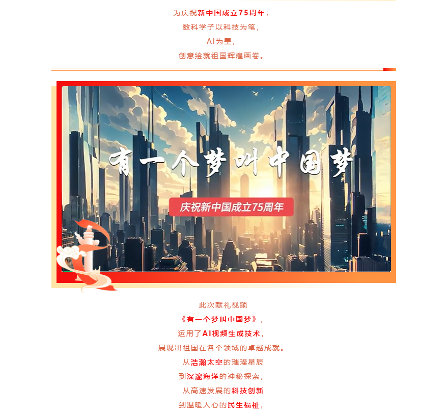 数据科学学院团委创新爱国主义教育的方式方法,将其融入青年学生专业知识的学习实践中,开展了“代码传情:三行代码颂祖国”活动,青年学生运用所学的编程知识,用三行代码表达对祖国的热爱和祝福;开展“时光焕彩:AI唤醒老照片的祖国记忆”活动,同学们收集具有历史意义的与祖国发展相关的照片,运用人工智能技术,如图像修复、上色、动态化等手段,让老照片焕发生机;院青年学生会运用AI视频生成技术,创新出品AI献礼视频《有一个梦叫中国梦》,让青年学子在提升专业本领的同时,以拳拳之心告白祖国。