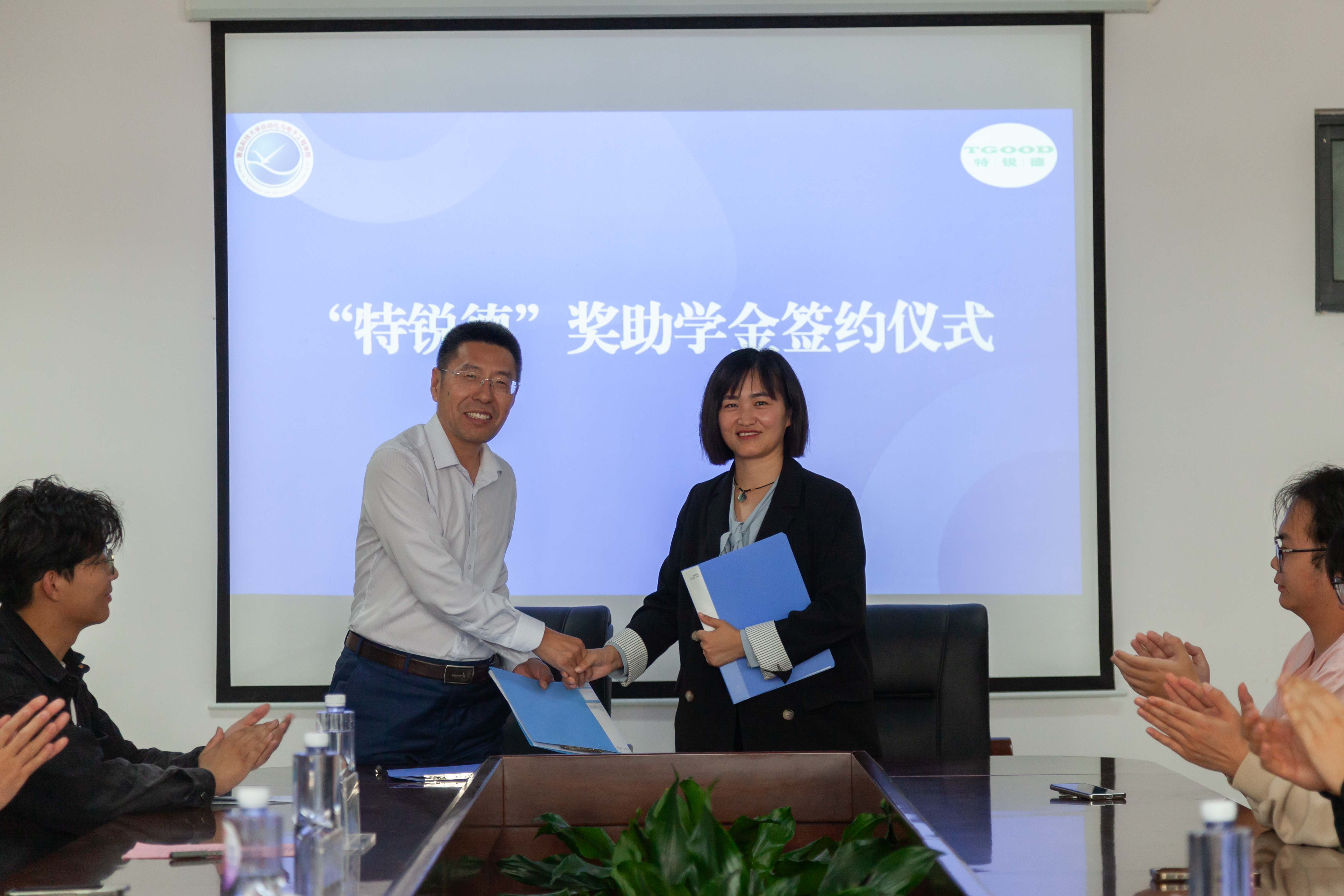 签约仪式上,李卉向韩增雪颁发了捐赠证书,以表达学院对公司的诚挚感谢和崇高敬意。巩敦卫与韩增雪共同签署了“特锐德”奖助学金合作协议,本次签约为双方第二年签约,标志着双方合作迈出了坚实的一步。张莹与刘名森进行了捐赠交接。