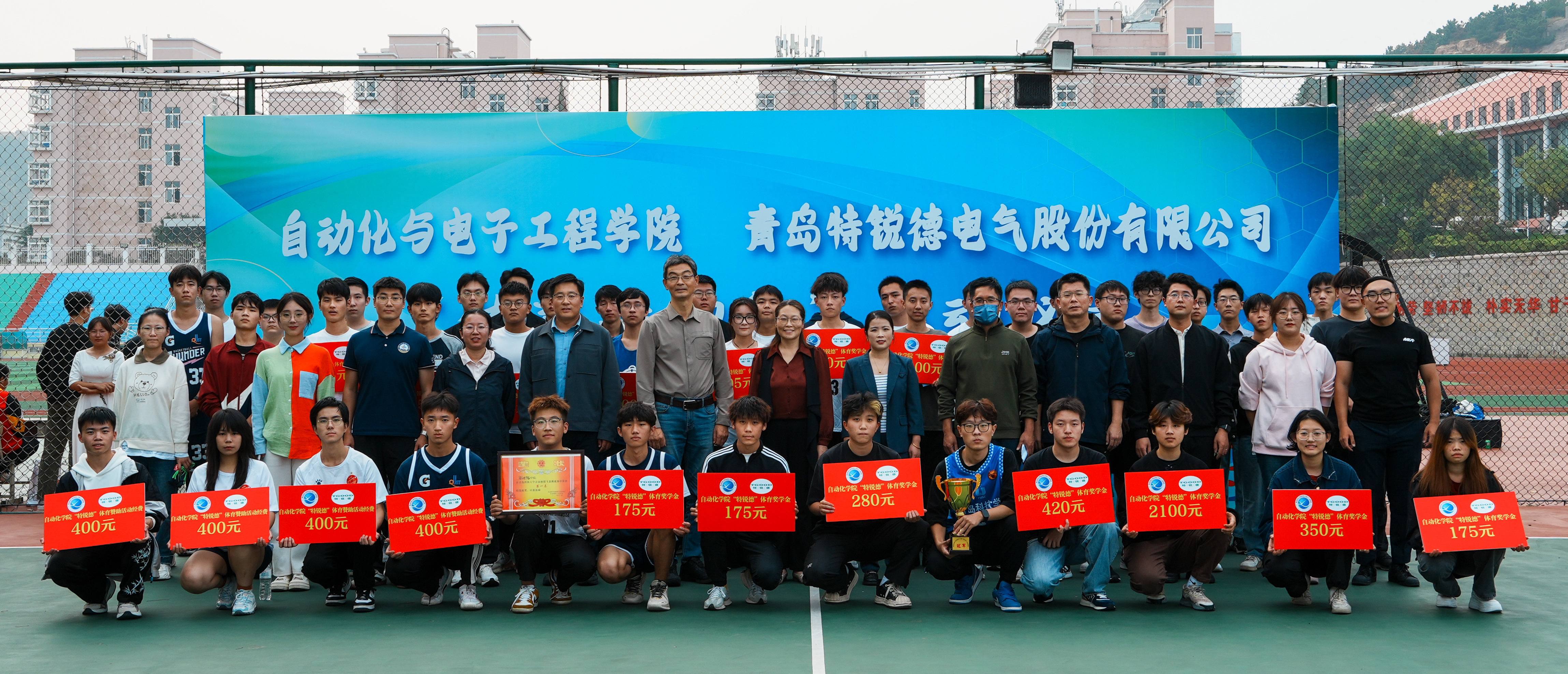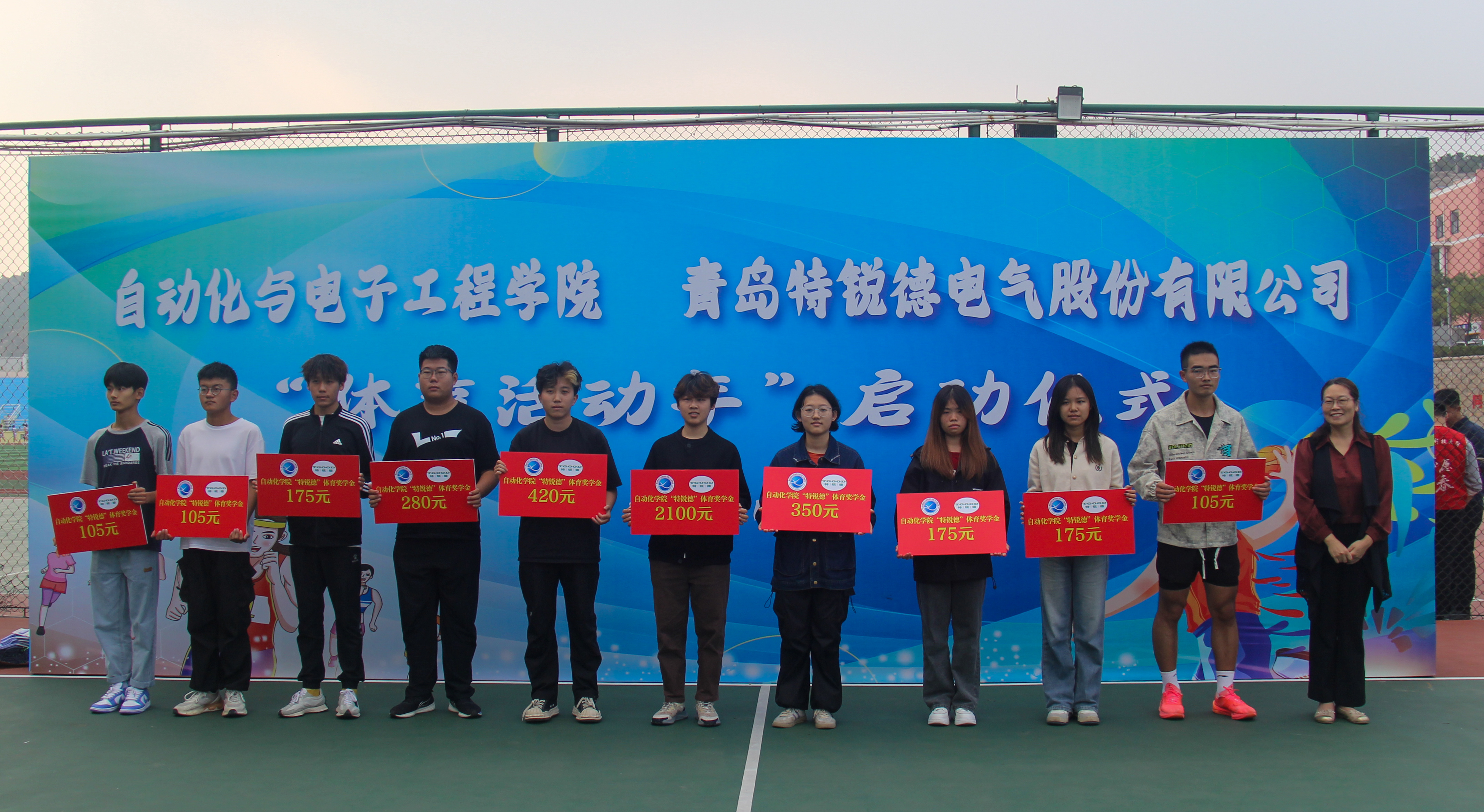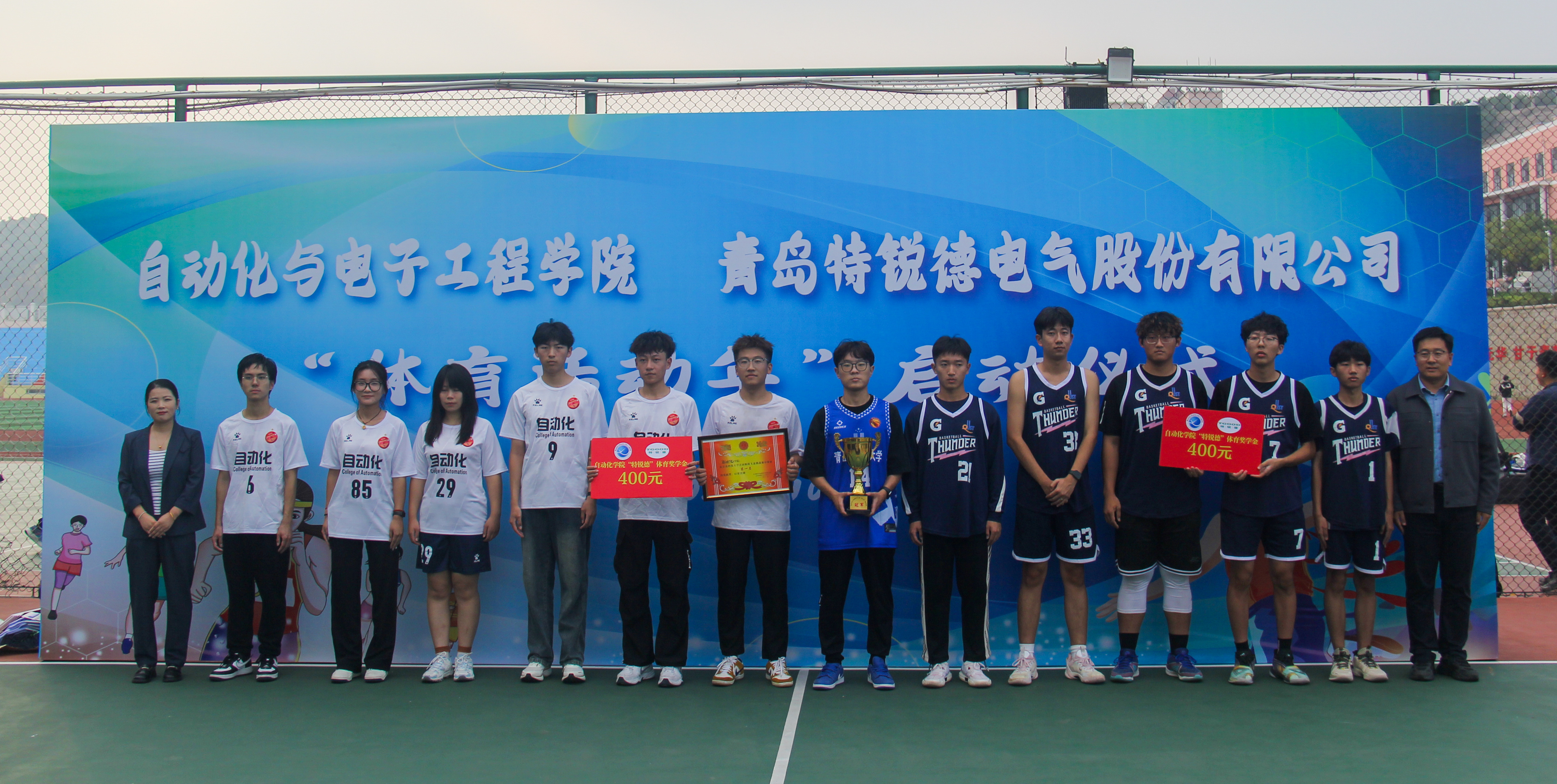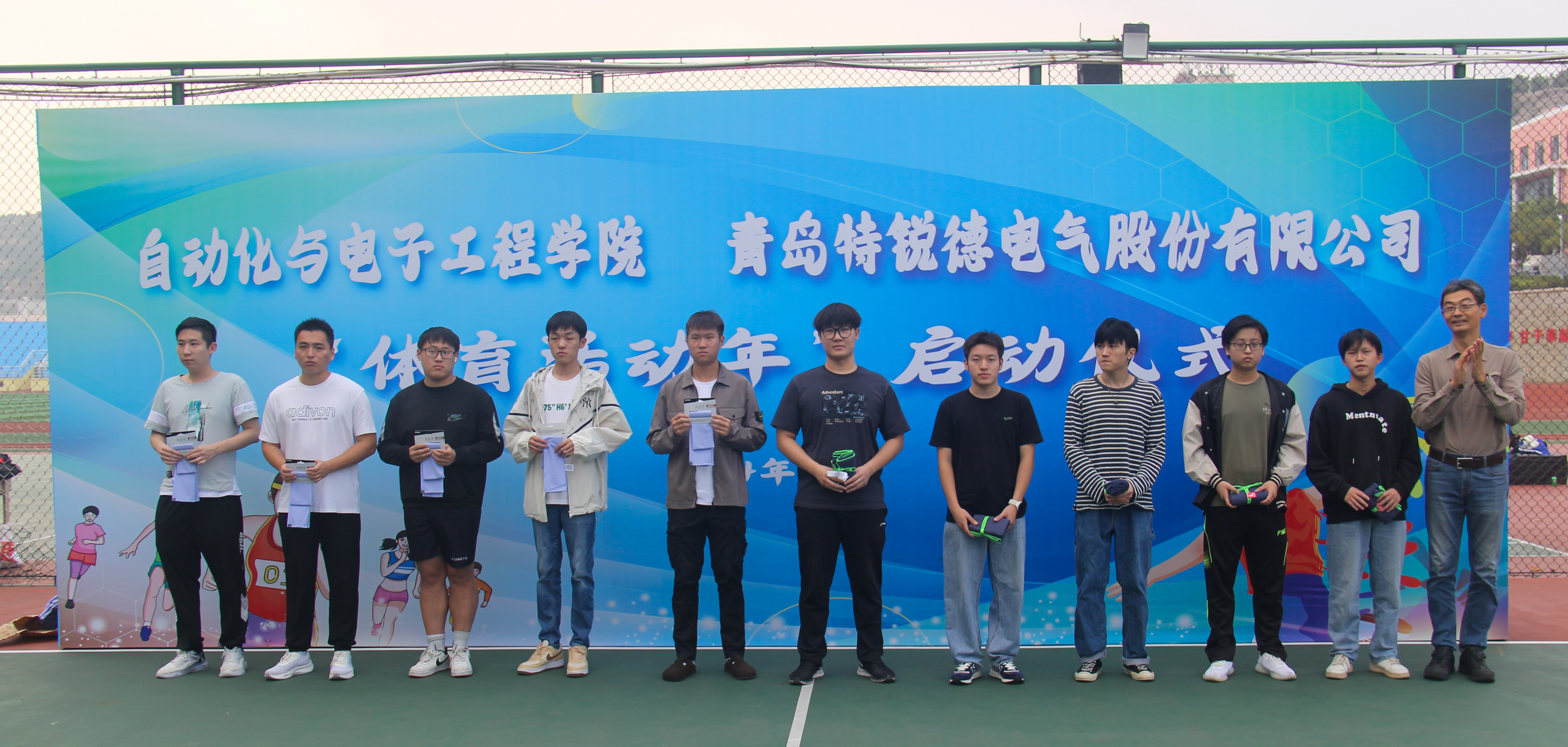 为进一步增强青年学生体质,弘扬体育精神,促进校企合作在体育领域的深度融合,10月15日下午,自动化与电子工程学院团委与青岛特锐德电气股份有限公司联合举办的“大学生体育活动年”启动仪式于南苑篮球场举行。青岛特锐德电气股份有限公司人力资源中心人力总经理助理张莹,学院党委书记李卉,学校教务处专职教学督导员楚晓东、学生处副处长李春家、团委副书记李浩,学院党委副书记兼副院长刘名森出席启动仪式。仪式由学院团委书记兼学工办主任雷静主持。