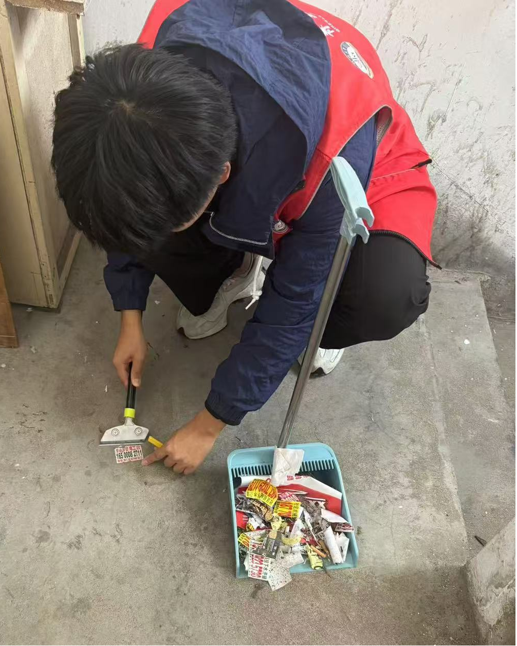 活动之前,橡尚志愿服务队提前与鲁阳路社区居委会沟通协调本次活动所需物资等,为本次志愿服务活动顺利进行奠定坚实基础。活动当天,志愿者们准时到达鲁阳路社区,他们手持工具,穿梭在小区的各个角落,对墙面、电线杆、楼梯间等处的小广告进行了全面清理,在确保墙面不受损的前提下高效、精准地铲除了顽固的小广告,做到了“清理一处、靓丽一处”。