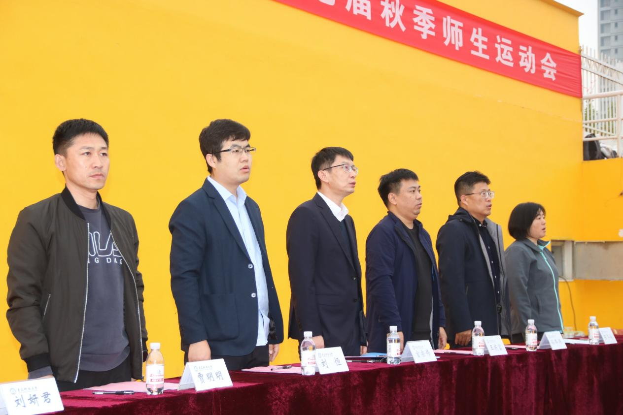 随后,孙举涛、刘恒、贾明明和陈冬梅分别为学院体育联盟篮球队、足球队、排球队、田径队授旗。裁判员及运动员代表庄严宣誓。由84名新生组成的八段锦方队以表演的形式展现了传统体育文化的魅力。
