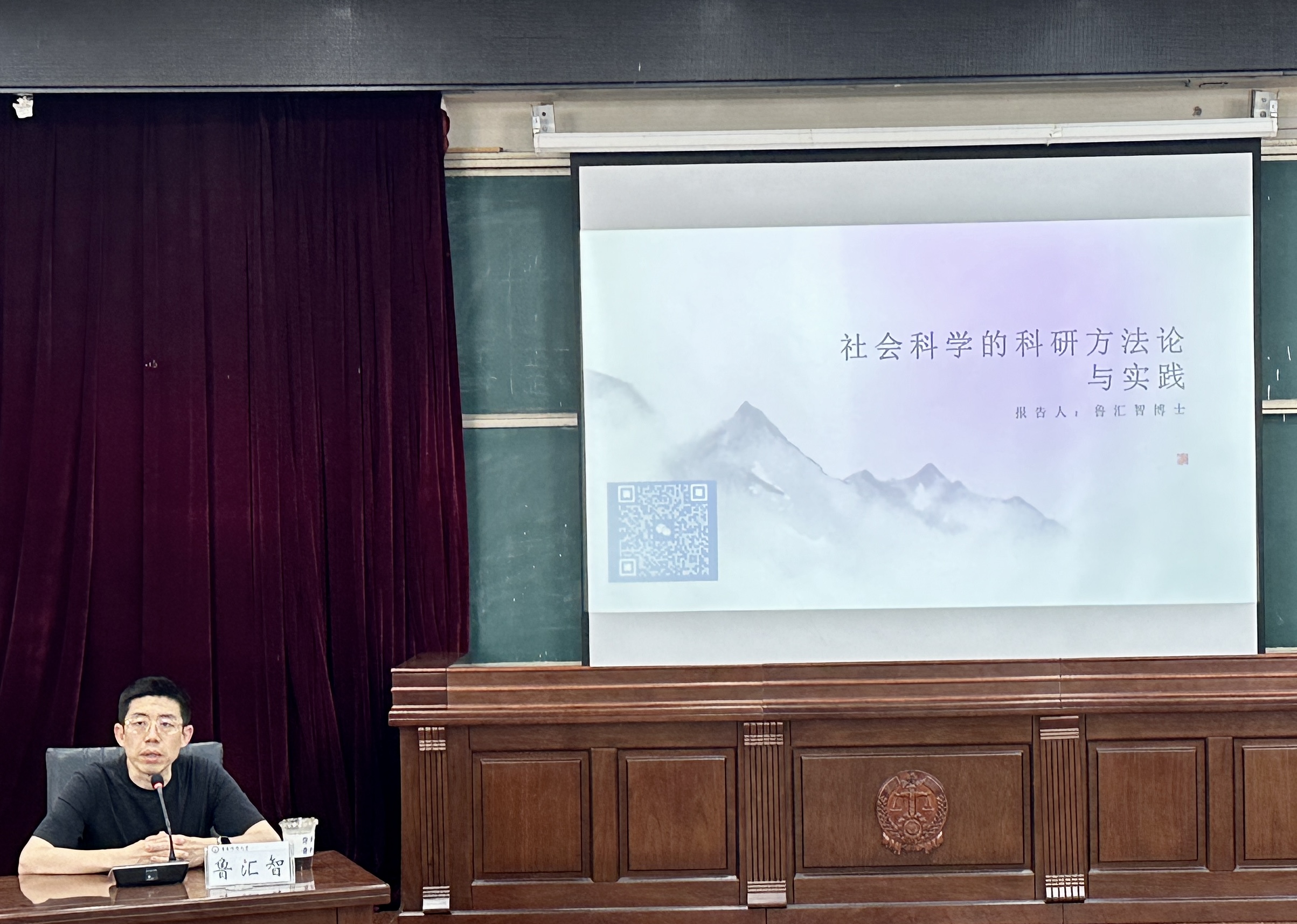 5月24日下午,复旦大学管理学院鲁汇智博士受邀做客法学院团委开讲LAW暨研究生学术论坛,开展“社会科学的科研方法论与实践”专题讲座。法学院党委书记曲明、专业教师、本科及研究生百余人参加。活动由副院长李鑫主持。