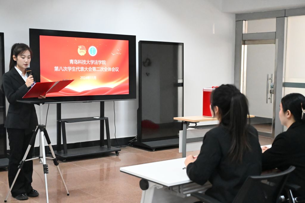 11月30日上午,法学院第八次学生代表大会、第五次研究生代表大会在弘毅楼A201召开。法学院党委书记曲明、党委副书记兼副院长王祥梅、团委副书记兼学工办副主任高媛、团委老师王宇、校研究生会代表张哲、各兄弟学院代表及法学院全体学生代表、研究生代表参加大会,大会由王亚峰主持。