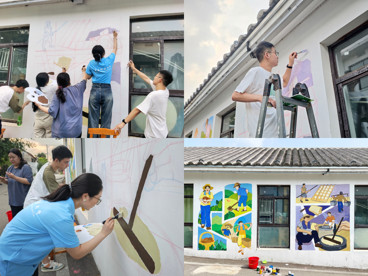 迎着午后的阳光,实践团成员们积极协助清华大学泗水支队建筑组,在村内精心描画手绘文化墙,为新农村增添色彩。整个实践活动中,成员们以严谨认真的态度对待每一处勾线、每一笔上色,一笔一画都体现了大家的热情投入与耐心。这些墙绘不仅美化了村庄环境,还生动展现了泗水县东仲都村的民俗文化,有利于传播美德、寓教于乐,为村容村貌的改造提升和美丽乡村建设添彩助力。